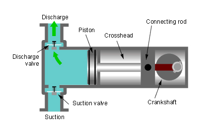 این گونه بوستر پمپ ها دارای تجهیزاتی هستند که انتقال انرﮊی در آنها به صورت سیال بوده که آنها نیز به صورت دوره ای می باشد. نیروی محرکه این گونه بوستر پمپ ها اکثراً توسط موتورهای الکتریکی تامین میشود. در این گونه بوستر پمپ ها حرکت دورانی میل لنگ را تبدیل به حرکت رفت و برگشتی پیستونی در یک سیلندر شده که با برگشت به عقب پیستون در سیلندر حالت مکش ایجاد شده و در نتیجه سیال از طریق یک شیر ورودی داخل سیلندر می شود. با حرکت پیستون به طرف جلو دریچه ورودی بسته و مایع از طریق شیر خروجی به خارج رانده می شود. شیرهای ورودی و خروجی یکطرفه بوده و طوری ساخته شده اند که در مراحل رفت و آمد پیستون، از ورود مایع داخل سیلندر به قسمت کم فشار و بالعکس ممانعت شود.